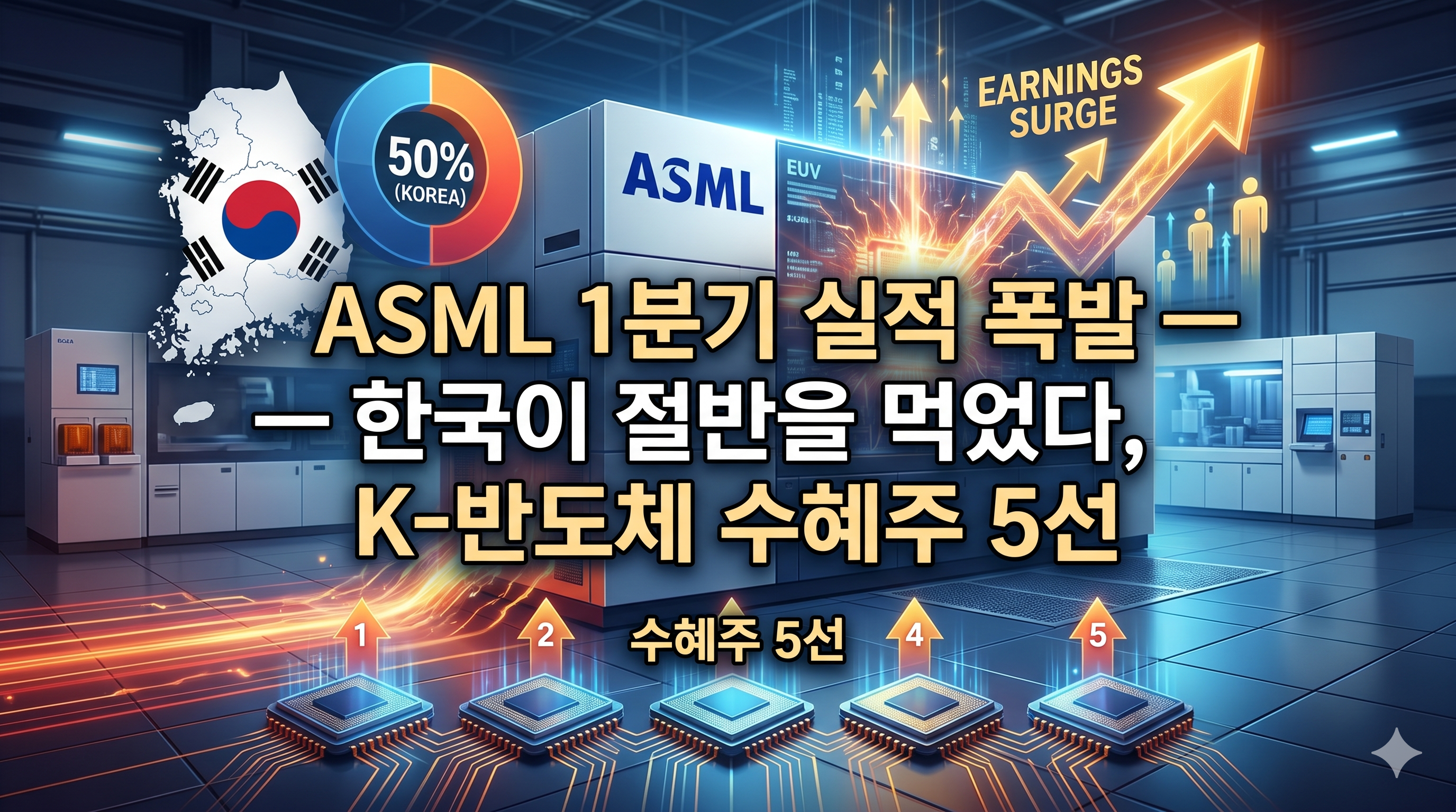 ASML 1분기 실적 폭발 — 한국이 절반을 먹었다, K-반도체 수혜주 5선